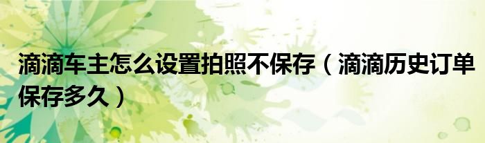 大家好,跳跳为你解答以上问题。滴滴车主怎么设置拍照不保存,滴滴历史订单保存多久这个问题很多人还不知道,现在让我们一起来看看吧!