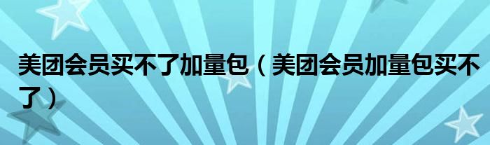 大家好,跳跳为你解答以上问题。美团会员买不了加量包,美团会员加量包买不了这个问题很多人还不知道,现在让我们一起来看看吧!