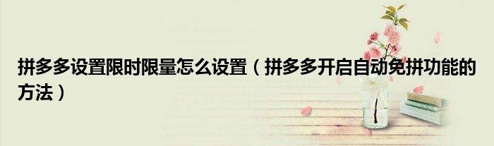 拼多多设置限时限量怎么设置(拼多多开启自动免拼功能的方法)
