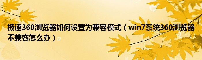 大家好,熊熊为你解答以上问题。极速360浏览器如何设置为兼容模式,win7系统360浏览器不兼容怎么办这个很多人还不知道,现在让我们一起来看看吧!