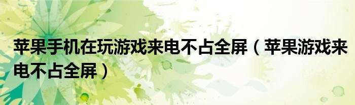 大家好,熊熊为你解答以上问题。苹果手机在玩游戏来电不占全屏,苹果游戏来电不占全屏这个很多人还不知道,现在让我们一起来看看吧!