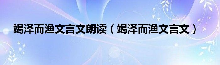 大家好,小晋来为大家解答以下问题,关于竭泽而渔文言文朗读,竭泽而渔文言文很多人还不知道,今天让我们一起来看看吧!