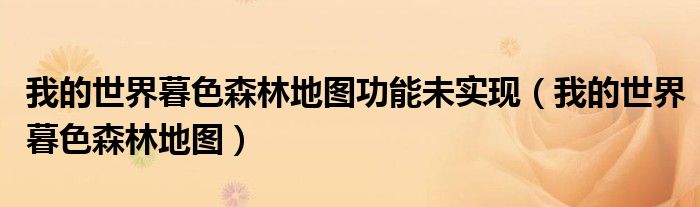 大家好,小晋来为大家解答以下问题,关于我的世界暮色森林地图功能未实现,我的世界暮色森林地图很多人还不知道,今天让我们一起来看看吧!