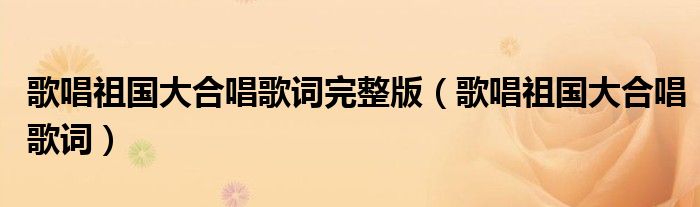 关于歌唱祖国大合唱歌词完整版,歌唱祖国大合唱歌词这个很多人还不知道,今天菲菲来为大家解答以上的问题,现在让我们一起来看看吧!
