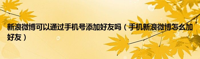 关于新浪微博可以通过手机号添加好友吗,手机新浪微博怎么加好友这个很多人还不知道,今天菲菲来为大家解答以上的问题,现在让我们一起来看看吧!