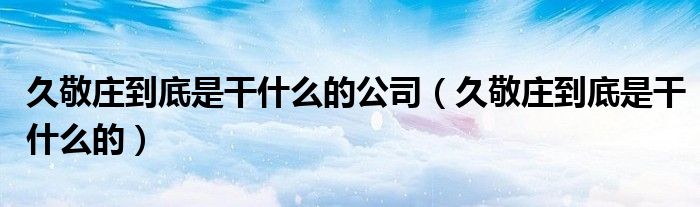 久敬庄到底是干什么的公司(久敬庄到底是干什么的)