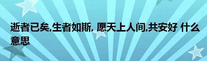 关于逝者已矣,生者如斯, 愿天上人间,共安好 什么意思这个很多人还不知道,今天菲菲来为大家解答以上的问题,现在让我们一起来看看吧!