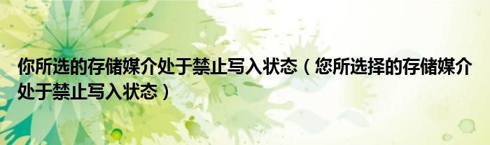 关于你所选的存储媒介处于禁止写入状态,您所选择的存储媒介处于禁止写入状态这个很多人还不知道,今天菲菲来为大家解答以上的问题,现在让我们一起来看看吧!