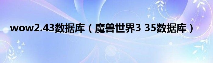 关于wow2.43数据库,魔兽世界3 35数据库这个很多人还不知道,今天菲菲来为大家解答以上的问题,现在让我们一起来看看吧!