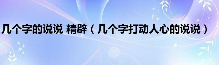 大家好,小晋来为大家解答以下问题,关于几个字的说说 精辟,几个字打动人心的说说很多人还不知道,今天让我们一起来看看吧!