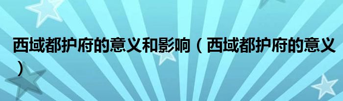关于西域都护府的意义和影响,西域都护府的意义这个很多人还不知道,今天菲菲来为大家解答以上的问题,现在让我们一起来看看吧!
