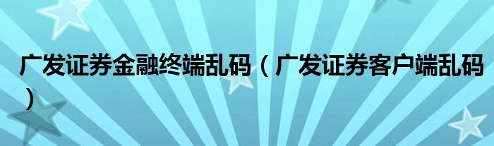 关于广发证券金融终端乱码,广发证券客户端乱码这个很多人还不知道,今天菲菲来为大家解答以上的问题,现在让我们一起来看看吧!