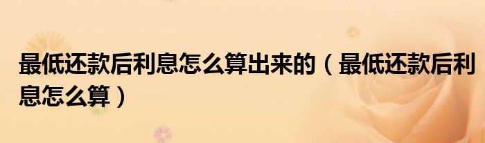 关于最低还款后利息怎么算出来的,最低还款后利息怎么算这个很多人还不知道,今天菲菲来为大家解答以上的问题,现在让我们一起来看看吧!