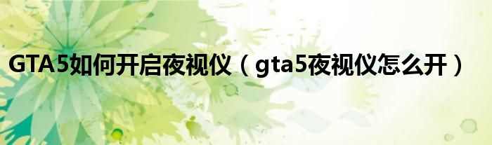 大家好,小晋来为大家解答以下问题,关于GTA5如何开启夜视仪,gta5夜视仪怎么开很多人还不知道,今天让我们一起来看看吧!