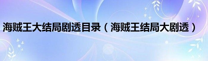 大家好,小晋来为大家解答以下问题,关于海贼王大结局剧透目录,海贼王结局大剧透很多人还不知道,今天让我们一起来看看吧!