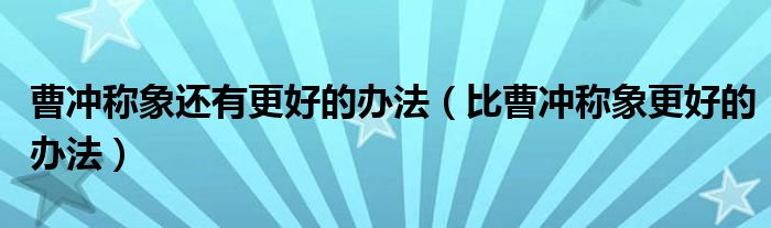 曹冲称象还有更好的办法(比曹冲称象更好的办法)