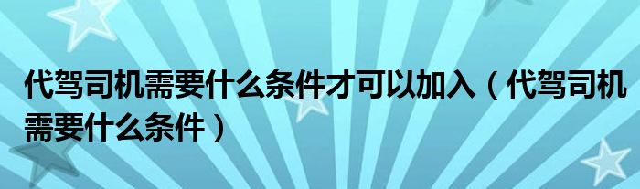 关于代驾司机需要什么条件才可以加入,代驾司机需要什么条件这个很多人还不知道,今天菲菲来为大家解答以上的问题,现在让我们一起来看看吧!