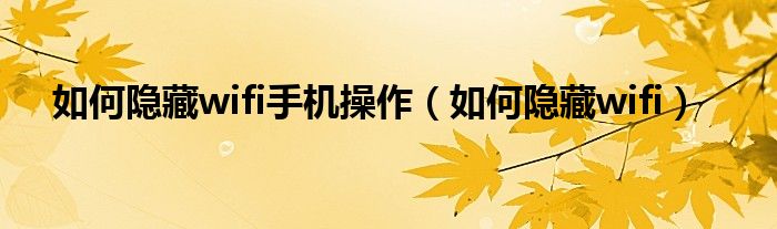 大家好,小晋来为大家解答以下问题,关于如何隐藏wifi手机操作,如何隐藏wifi很多人还不知道,今天让我们一起来看看吧!