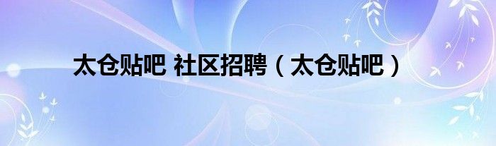太仓贴吧 社区招聘(太仓贴吧)