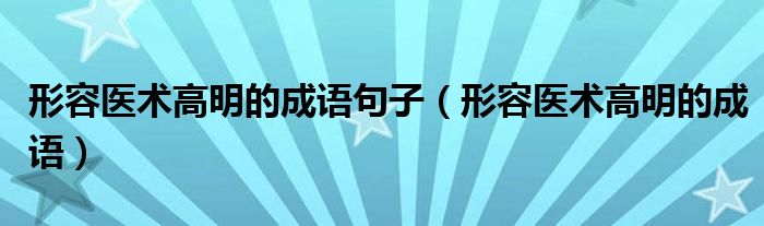 大家好,小晋来为大家解答以下问题,关于形容医术高明的成语句子,形容医术高明的成语很多人还不知道,今天让我们一起来看看吧!