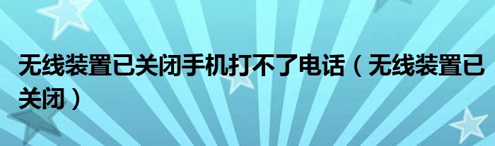 无线装置已关闭手机打不了电话(无线装置已关闭)