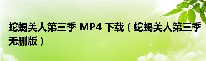 关于蛇蝎美人第三季 MP4 下载,蛇蝎美人第三季无删版这个很多人还不知道,今天菲菲来为大家解答以上的问题,现在让我们一起来看看吧!