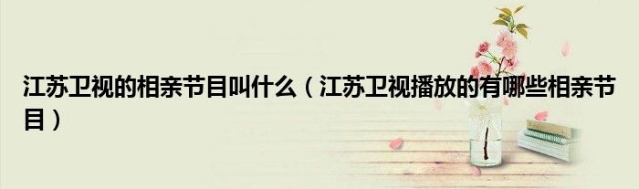关于江苏卫视的相亲节目叫什么,江苏卫视播放的有哪些相亲节目这个很多人还不知道,今天菲菲来为大家解答以上的问题,现在让我们一起来看看吧!