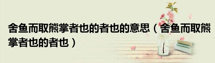 大家好,小晋来为大家解答以下问题,关于舍鱼而取熊掌者也的者也的意思,舍鱼而取熊掌者也的者也很多人还不知道,今天让我们一起来看看吧!