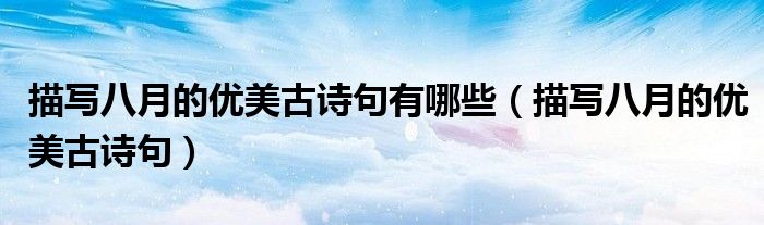 大家好,小晋来为大家解答以下问题,关于描写八月的优美古诗句有哪些,描写八月的优美古诗句很多人还不知道,今天让我们一起来看看吧!