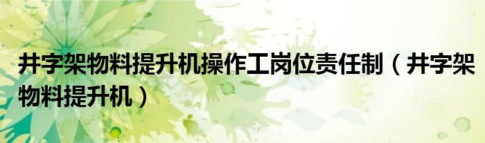 关于井字架物料提升机操作工岗位责任制,井字架物料提升机这个很多人还不知道,今天菲菲来为大家解答以上的问题,现在让我们一起来看看吧!