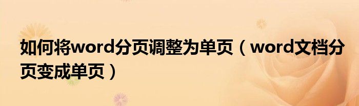 如何将word分页调整为单页(word文档分页变成单页)