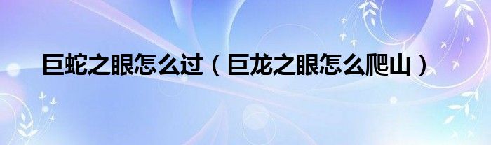 巨蛇之眼怎么过(巨龙之眼怎么爬山)