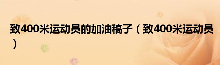 关于致400米运动员的加油稿子,致400米运动员这个很多人还不知道,今天菲菲来为大家解答以上的问题,现在让我们一起来看看吧!