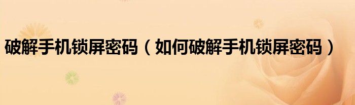 大家好,小晋来为大家解答以下问题,关于破解手机锁屏密码,如何破解手机锁屏密码很多人还不知道,今天让我们一起来看看吧!
