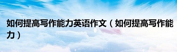 关于如何提高写作能力英语作文,如何提高写作能力这个很多人还不知道,今天菲菲来为大家解答以上的问题,现在让我们一起来看看吧!