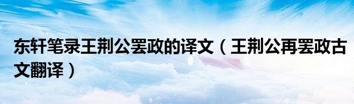 关于东轩笔录王荆公罢政的译文,王荆公再罢政古文翻译这个很多人还不知道,今天菲菲来为大家解答以上的问题,现在让我们一起来看看吧!