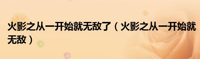火影之从一开始就无敌了(火影之从一开始就无敌)
