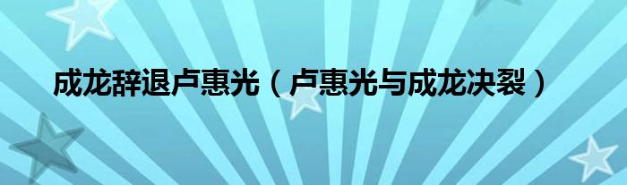 关于成龙辞退卢惠光,卢惠光与成龙决裂这个很多人还不知道,今天菲菲来为大家解答以上的问题,现在让我们一起来看看吧!