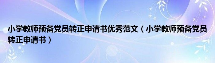 关于小学教师预备党员转正申请书优秀范文,小学教师预备党员转正申请书这个很多人还不知道,今天菲菲来为大家解答以上的问题,现在让我们一起来看看吧!