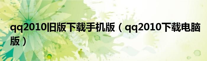 qq2010旧版下载手机版(qq2010下载电脑版)