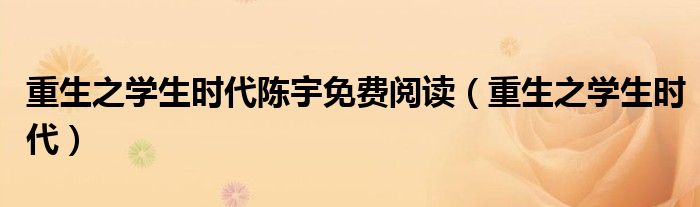 重生之学生时代陈宇免费阅读(重生之学生时代)