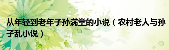 关于从年轻到老年子孙满堂的小说,农村老人与孙子乱小说这个很多人还不知道,今天菲菲来为大家解答以上的问题,现在让我们一起来看看吧!